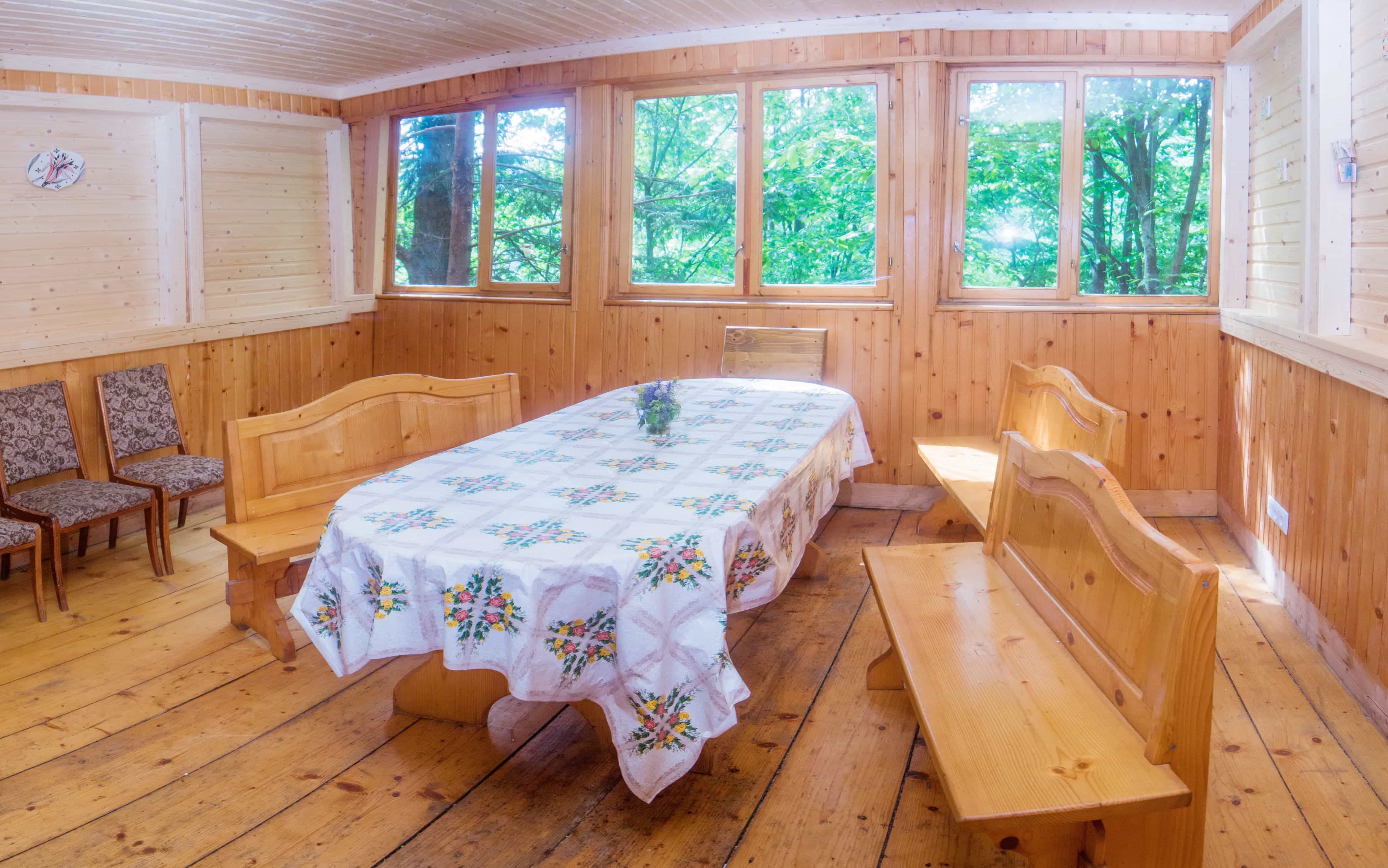 Користування мангалом (+1 в’язка дров). За попередньою згодою дозволяється привозити домашніх тварин. Прибирання кімнат, зміна постелі та рушників — 1 раз на 7 днів або за потребою.