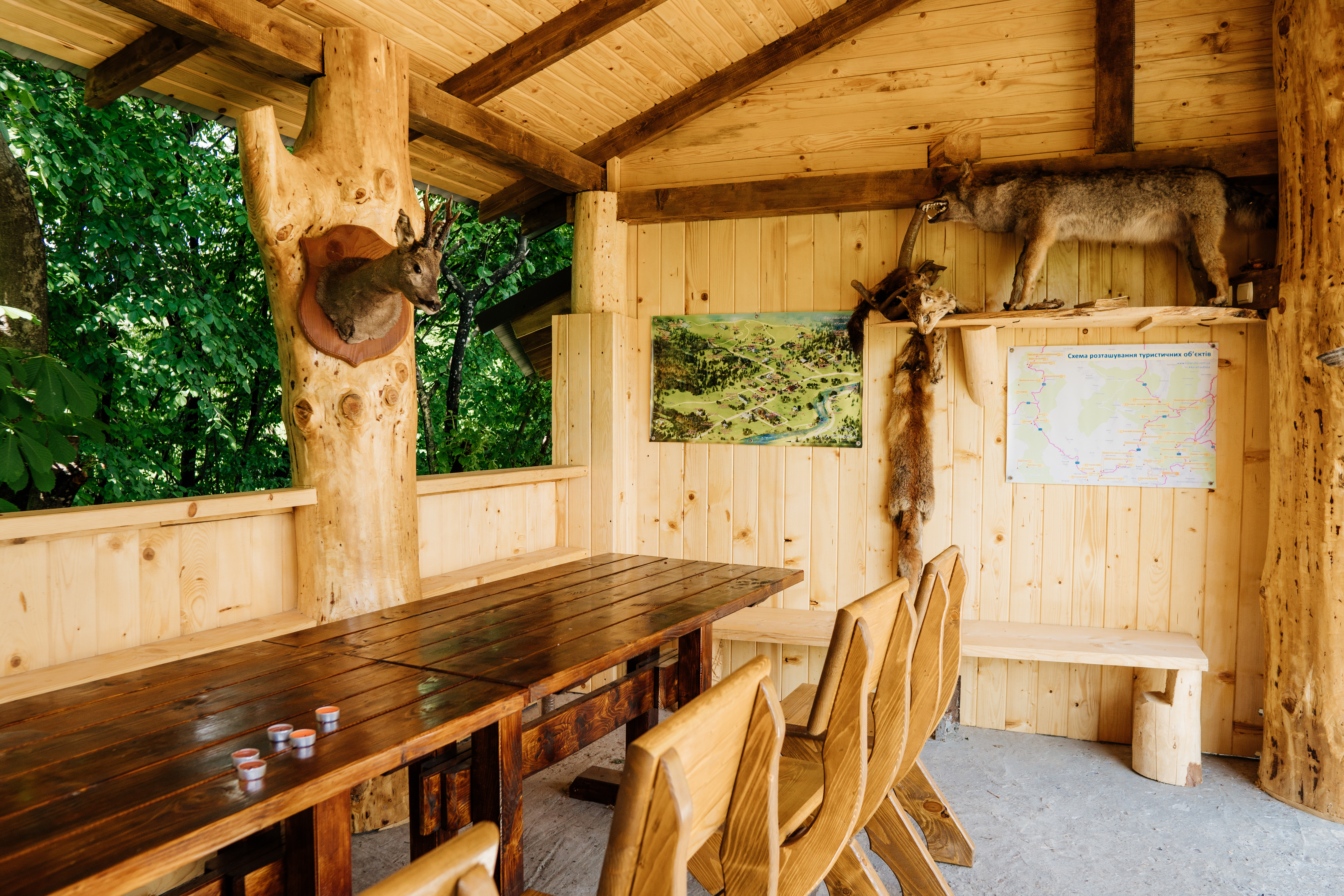 На території комплексу є сувенірна лавка з різноманітними сувенірами від місцевих різбярів та інших майстрів.