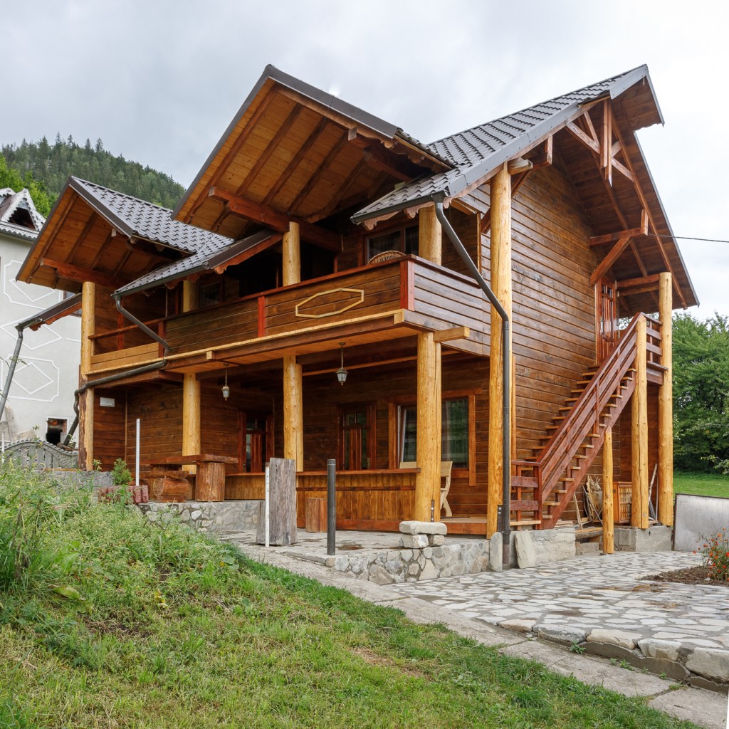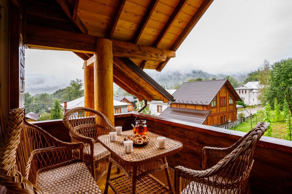 кожна спальня має вихід на балкон з видом на ліс та карпатські гори;