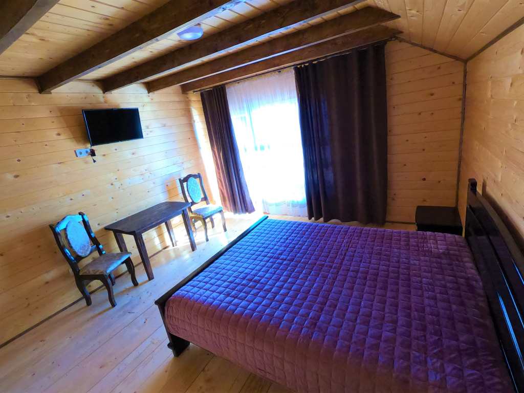 тримісний номер (двоспальне та односпальне ліжко, вішалка для одягу, телевізор, столик з стільцями);
